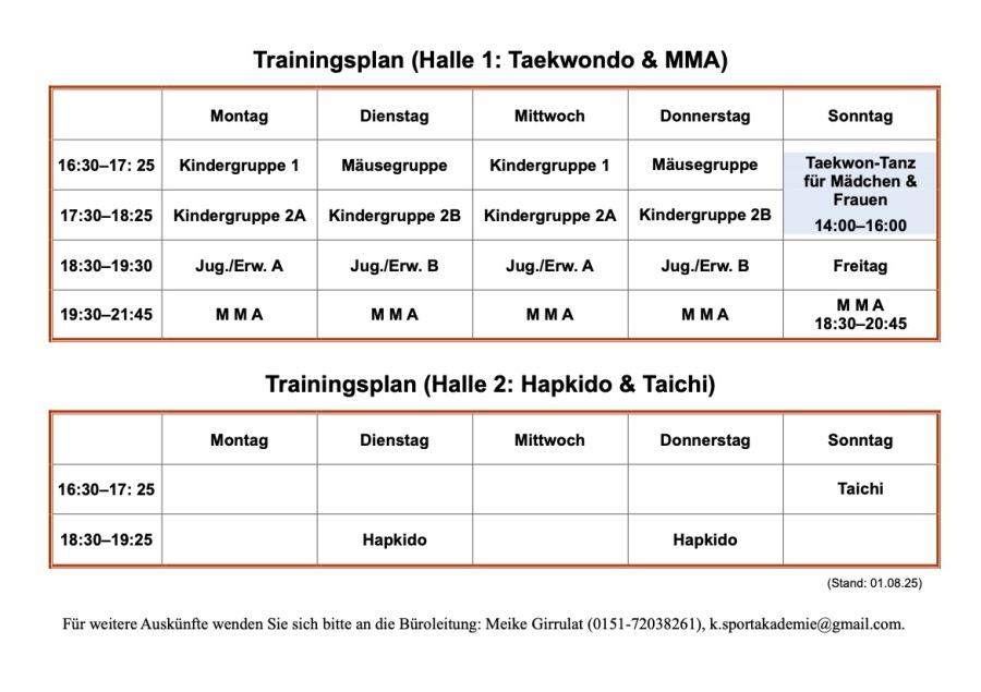 Trainingszeiten